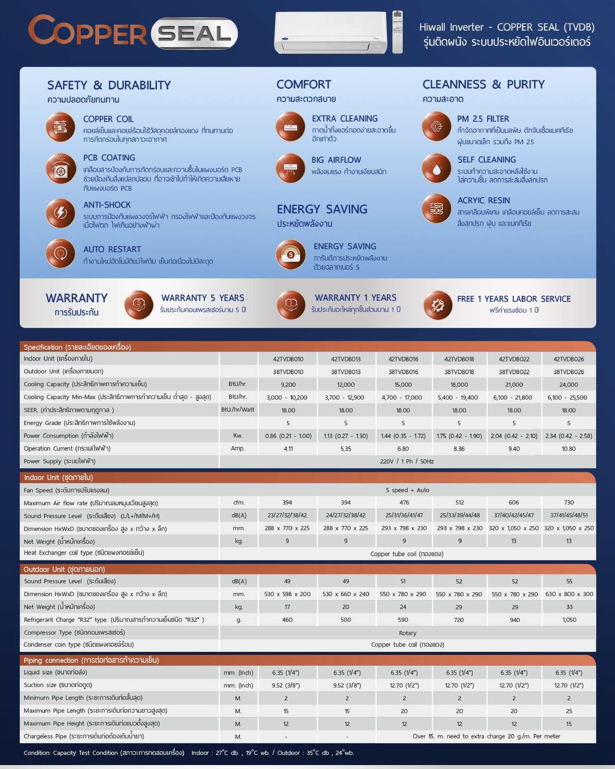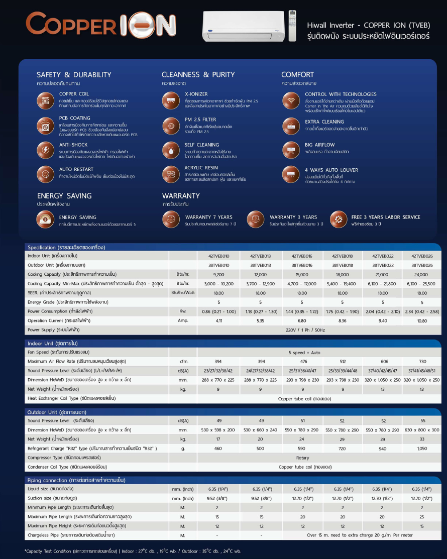 -COPPER COIL คอยล์เย็นและคอยล์ร้อนใช้วัสดุคอยล์ทองแดง ที่มีความทนทานสูงต่อการกัดกร่อนทุกสภาวะอากาศ